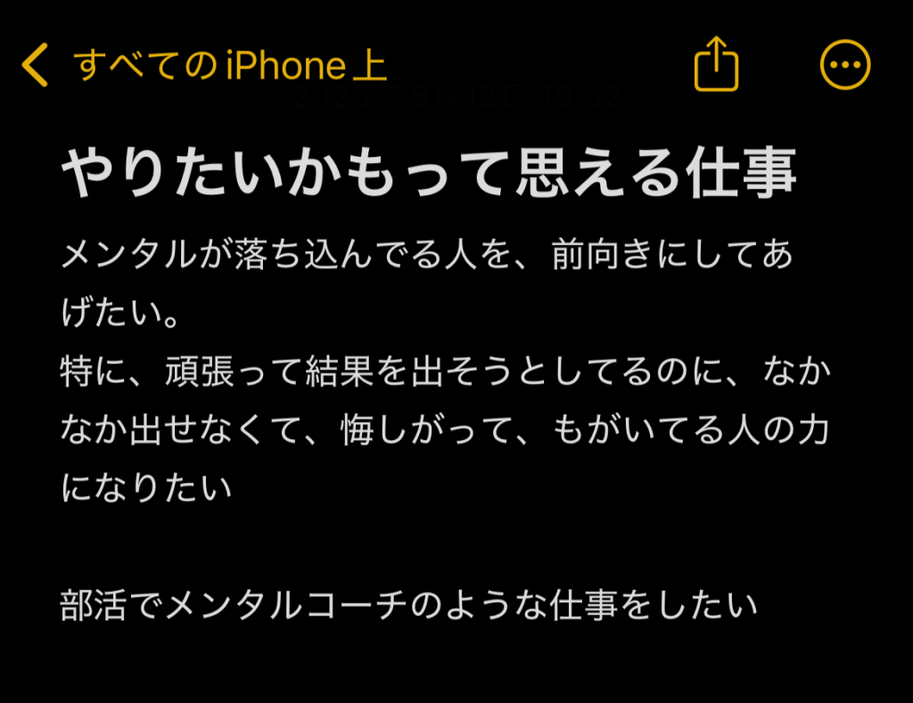 そんな想いがこみ上げ、帰りの電車でスマホのメモを開き、心の中にある“自分のやりたいこと”を殴り書きしました。